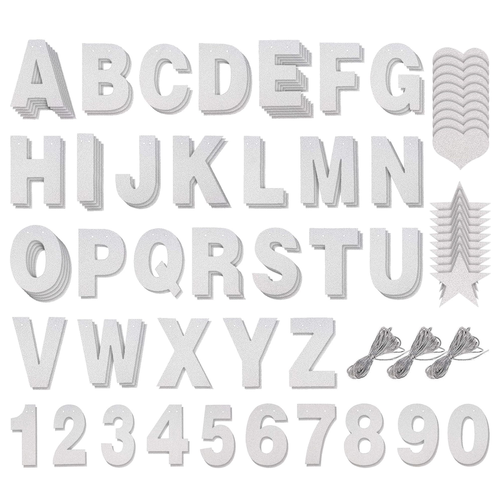 126 Piece Make Your Own Banner Kit Diy Banner With Silver Glitter Letters A Z Numbers 0 9 Hearts Stars And 3 Strings For Party Decorations Walmart Com